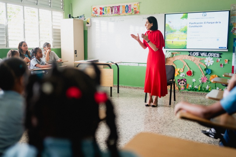 Santo Domingo RD.– La primera dama de la República, Raquel Arbaje, visitó la Escuela Padre Eulalio Arias, en el sector Cristo Rey, donde