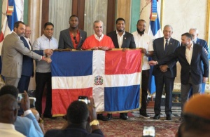 Santo Domingo RD.- El presidente Luis Abinader encabezó el acto de entrega del pabellón nacional a los Leones del Escogido, equipo que
