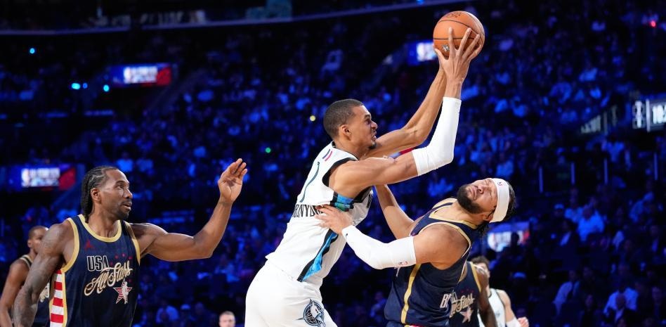 Los Angeles.- La NBA disfrutó de nuevo el domingo de uno de sus eventos más icónicos que terminó con la victoria del combinado joven (USA Stars) liderado por Anthony Edwards sobre los veteranos de LeBron James (USA Stripes) y los internacionales (Team World) de Victor Wembanyama.