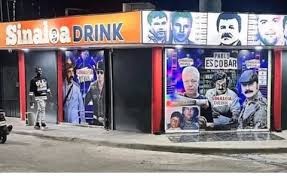 El local está forrado de imágenes de capos más destacados, como Pablo Escobar y el Chapo Guzmán.