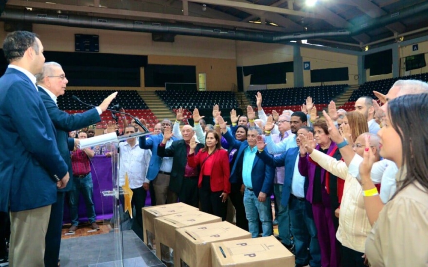Siendo las 2.25 de la tarde, Danilo Medina, presidente del PLD, tomó el juramento a los seleccionados primero por aclamación y luego los que resultaron electos mediante el voto automatizado.