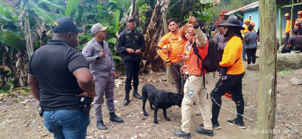 Agregó que en la intensa labor de localización participan activamente miembros del Ejército de la República Dominicana (ERD), la Defensa Civil, el Cuerpo de Bomberos y la Guardia Campestre, quienes emplean unidades caninas y drones para rastrear la zona.